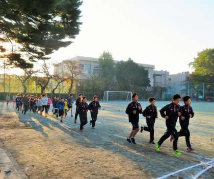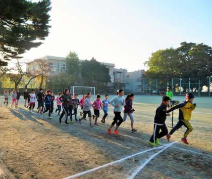 今朝の世田谷子ども駅伝に向けての朝練習は「砧の学び舎選抜チーム」選手選考会の1回目です。砧小学校、明正小学校、山野小学校から、男子が14名、女子が14名集まりましたので、2回の選考会を実施して、男女8名(補欠2名を含む)ずつを「選抜チーム」として選考します。子どもたちは真剣そのもので、やる気いっぱいです。