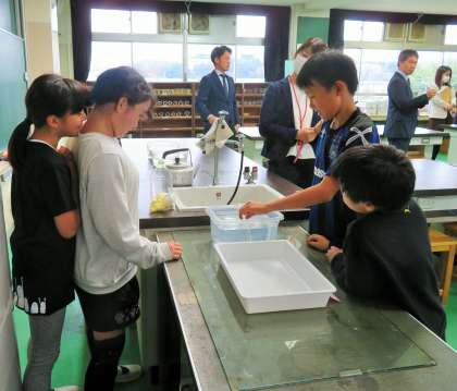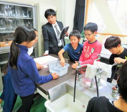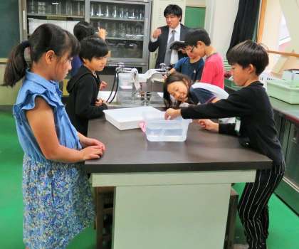 班ごとに実験をして、栓が飛び出す様子を観察しています。