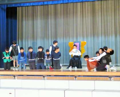11/11 学芸会練習佳境に〜4年生「王様の耳はロバの耳」〜1