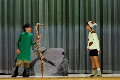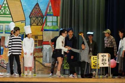 6年生の演目は「人間になりたがった猫」です。6年生にとって、小学校生活最初で最後の学芸会です。この学芸会にかける6年生の想いは格別です。6年生はそれぞれの役になりきって自分を表現していました。