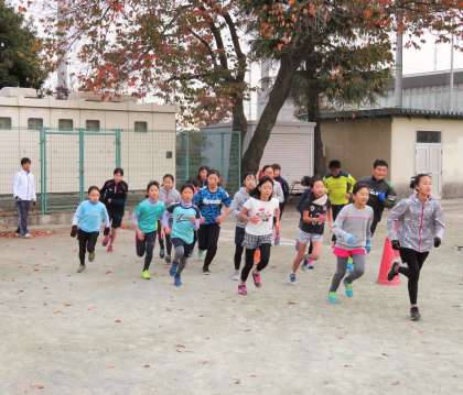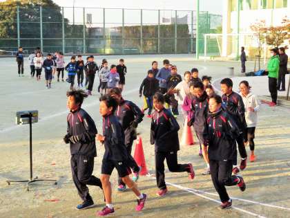 今朝は、世田谷子ども駅伝に向けて「砧の学び舎」選抜チーム、選手選考会の2回目です。砧小学校、明正小学校、山野小学校から、男子が14名、女子が14名集まりましたので、2回の選考会を実施して、男女8名(補欠2名を含む)ずつを選考します。