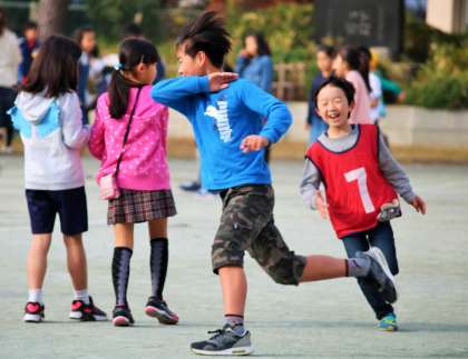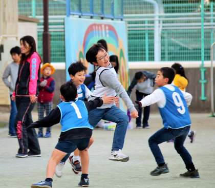 6年生のおかげで、朝から校庭には笑顔がいっぱいです!