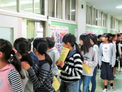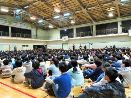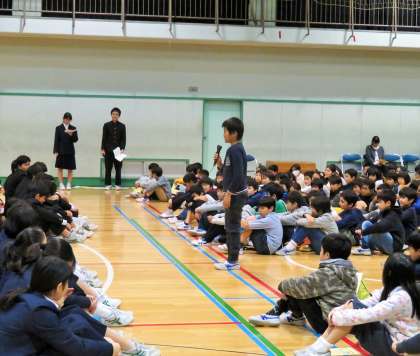 昨日、砧中学校に6年生が出かけ、中学校見学をしました。砧中学校では、体育館で生徒会役員の皆さんから、学校生活についての説明がありました。中学生の優しいお兄さん、お姉さんの説明で、子どもたちは安心できたのではないかと思います。その後、校内めぐりと授業参観です。