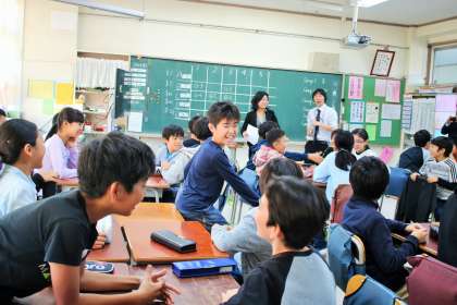 このような授業研究会で4校の教員の交流がより深まり、さらに、今後の授業改善につなげたいと考えています。学び舎の児童・生徒のより一層の幸せのために、実践研究を続けてまいります。
