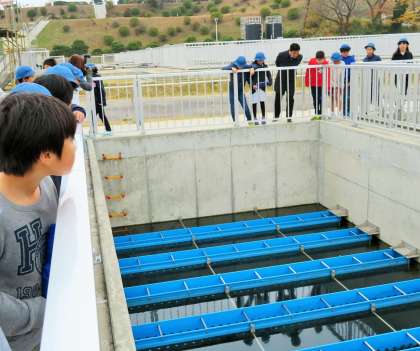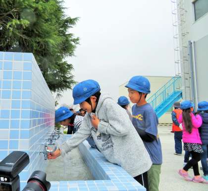 浄水場を見学し、できたてのお水も飲ませていただきました。