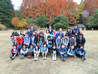紅葉もきれいな生田緑地で集合写真です。