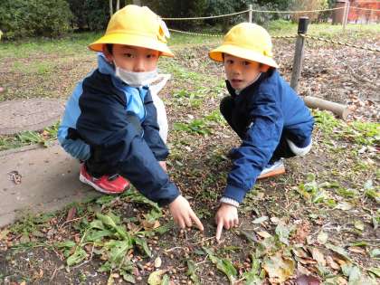 集めてきた秋の宝ものを使って、これから秋のお店屋さんの準備に取りかかります。どんぐり迷路、どんぐりごま、どんぐり図鑑、落ち葉のプール・・・。