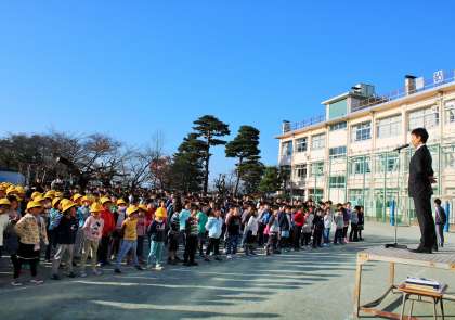 今日の全校朝会では、先週の土曜日に行われた「もちつき大会」についての話をしました。日本の伝統文化である「もちつき」を体験でき、つきたての柔らかいおもちを食べることができたのは、たくさんの保護者・地域の方々のご協力、ボランティアの力があったからこそなのです。
