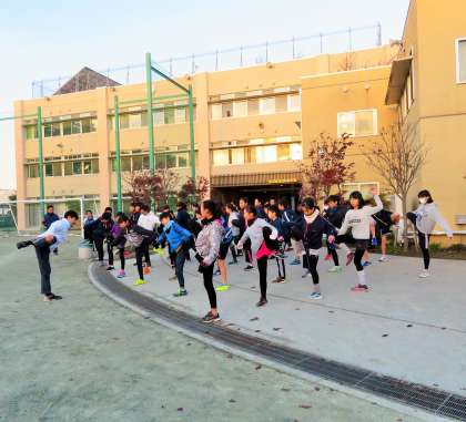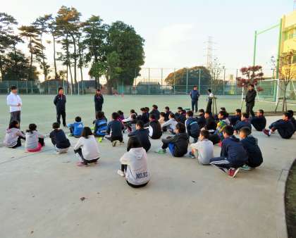 今朝は、世田谷子ども駅伝に向けての朝練習15日目です。朝7時集合での合同練習会は、決して楽なものではありませんが、子どもたちは真剣に全力で取り組んでいます。練習会には、校長先生をはじめ、多くの先生方、保護者の方々が応援、引率等で見守り励ましてくださっています。今日は、男女のキャプテンから決意表明がありました。