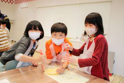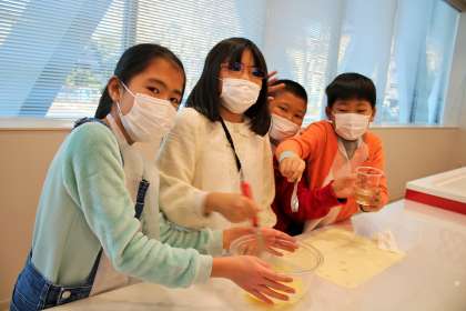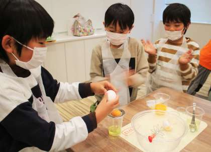 最後の見学地であるキューピーマヨテラスは、マヨネーズにまつわる様々な情報やトピックを体感しながら楽しく学べる見学施設です。実際にマヨネーズを作りました。