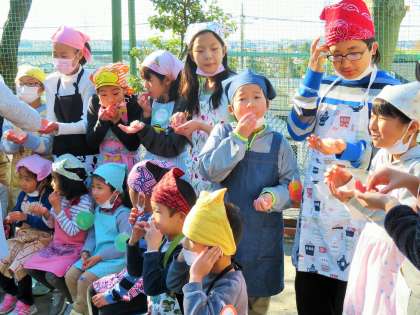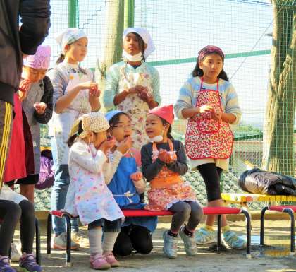 今日は、砧幼稚園の年長ほしぐみさんと5年生との交流もちつきです。5月に次大夫堀公園での田植えからはじまり、10月の稲刈りなどを体験してきたほしぐみさんと5年生が、刈った稲を使ってのもちつきをしました。まずは、はじめの会と蒸かしたてのお米を食べさせていただきました。ふっくらとしていて美味しかったです!