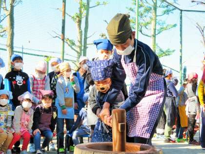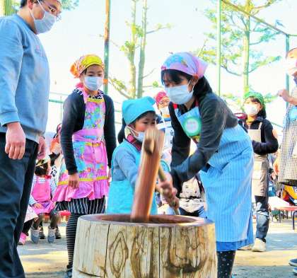 ほしぐみさんが杵を持ちやすいように、気遣いながらもちつきをしました。