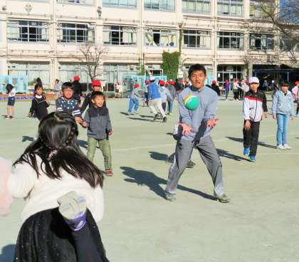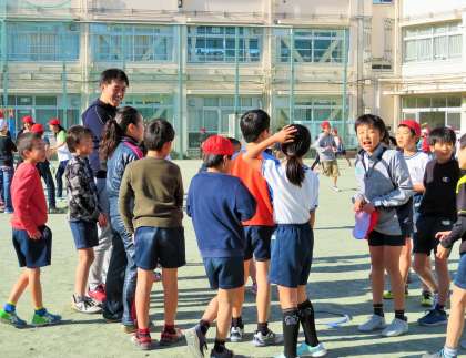 砧小学校の休み時間は、子どもと教師が一緒に遊ぶ「共遊び」を奨励しています。遊びを通して、授業中だけでは分からない、一人一人のよいところに気づいたり、ほんの小さな変化や情報も、この共遊びの中から得られればと思っています。