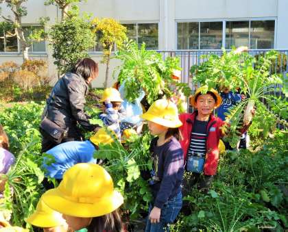 土の中から引き抜くと、子どもたちは歓声を上げ喜んでいました!