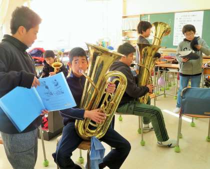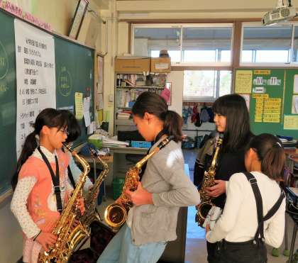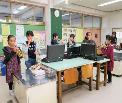 5年生は、ほとんどの子が初めて触れる楽器に胸をふくらませ、緊張しながらも真剣に取り組んでいました。