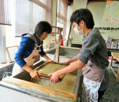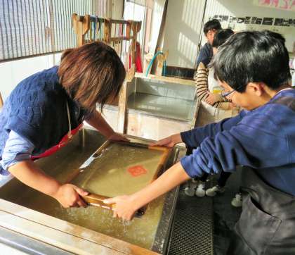 校章をすかして入れる証書の紙を丁寧に作成していきます。
