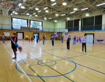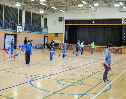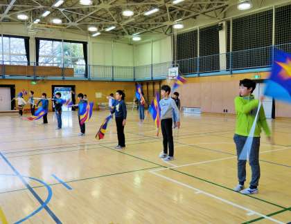 フラッグの練習は、6年生がお手本となって練習していました。子どもたちは、立ち姿勢やフラッグの扱い方を中心に、集中して練習に取り組んでいました。6年生の立ち姿はさすがです。かっこいい!