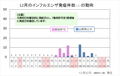 東京都は昨日12月21日、「都内のインフルエンザ流行が注意報レベルに」と報道発表しました。これから2月にかけて本格的な流行期に入ることが予想されます。ご注意ください。