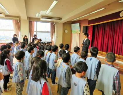 今日は砧幼稚園2学期終業式です。話を聞く姿勢がとても立派です。一人一人に成長がみられ嬉しく思いました。明日からは冬休みに入りますが、寒さに負けず、健康に気をつけて、家族で一緒に過ごす時間を大切にしてほしいと思っています。