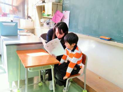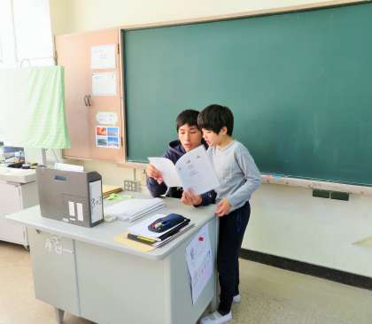 各担任の先生から通知表が渡されました。子どもたちは、もうどきどきです。どのクラスも、先生が子どもたち一人一人に丁寧に言葉を添えながら手渡しています。