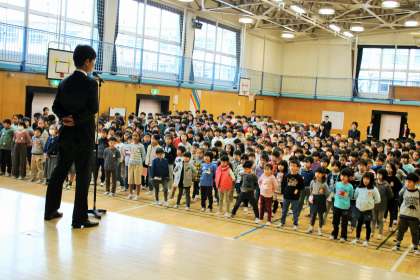 子どもたちが登校すると、学校全体に一気に活気がでます。始業式での話を聞く姿勢も引き締まっていて、新年の決意が感じられました。子どもたち一人一人が、新年の目標をしっかり立てて実行してほしいと思っています。
