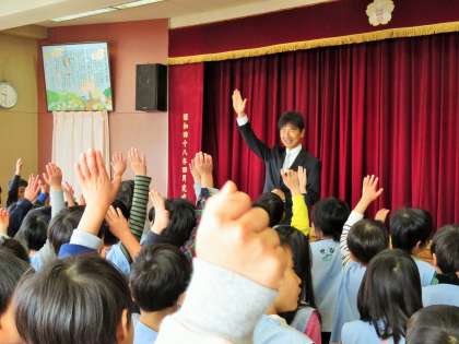 砧幼稚園も今日が始業式です。子どもたちは元気いっぱいで、話を聞く姿勢も背筋がピンと伸びていて立派でした。