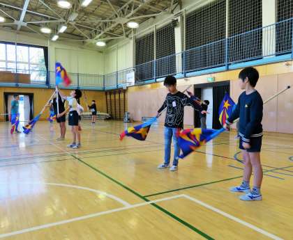 砧小学校の特色の1つ、伝統ある鼓笛の引き継ぎがありました。6年生が5年生に、優しくていねいに楽器・フラッグの扱い方から技まで、自分たちが習得したものを教えていました。