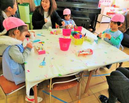 今日は砧幼稚園の土曜参加参観です。子どもたちは、お家の方と一緒に遊べるこの日をとっても楽しみにしていました。お正月の昔遊びが中心ですが、たくさんの保護者の方々が一緒に遊んでくださいましたので、朝から笑顔がいっぱいです。