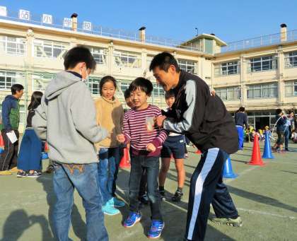 最後に、6年生とジャンケンをして、勝ったら走ってゴールに戻ります。