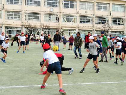 5年生の全力のボールは、勢いが違います。このような微笑ましい親子の様子もありました!