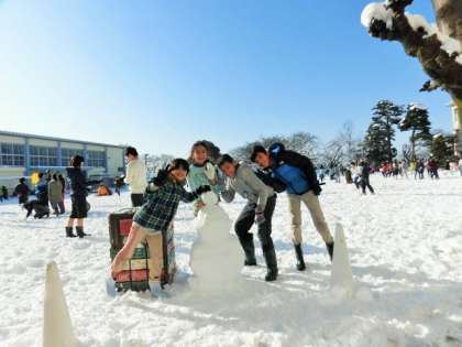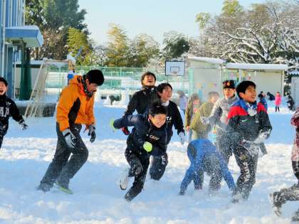子どもたちは、雪合戦や雪だるま作りに夢中です!