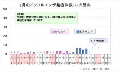 そこで、インフルエンザ罹患児童の健康回復と感染拡大防止のため、学校医および区の許可を得まして上記の措置をとることに決定しましたのでお知らせいたします。