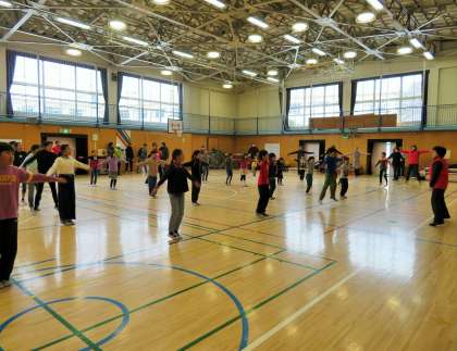 準備運動です。多くの子どもたちの参加があり、運営委員会の皆さんも喜んでいました。