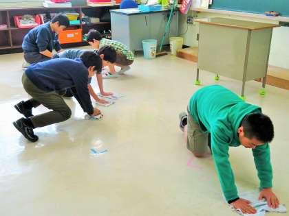 砧小学校の自慢は、上級生になればなるほど、一生懸命に床を掃いたり磨く子どもたちです!