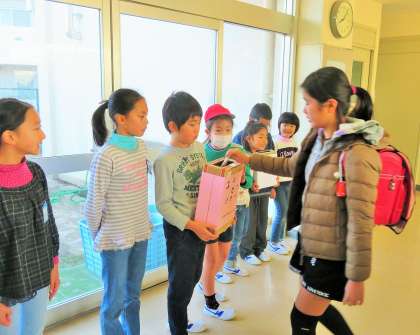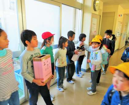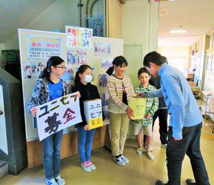 先生方も募金に協力しているので子どもたちも嬉しそうです。明後日、8日(木)まで、登校時に昇降口で行っています。