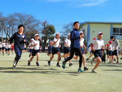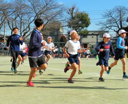 タイムトライアルスタートです!駅伝選手も一緒に走ってくれたので、子どもたちのやる気が爆発しました。
