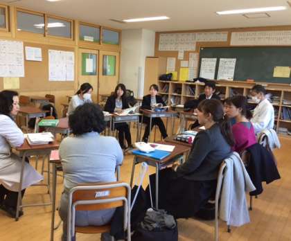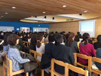 今日は、「砧の学び舎」4校の教員が集まり、各教科の分科会で、この1年間の活動状況や成果と課題について話し合い、全体会で発表をしました。