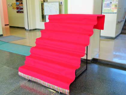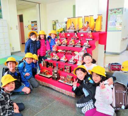 正門からすぐの昇降口には、昨夜から、ひな祭りの準備がされました。ひな祭りは女の子のための行事。健やかな成長と幸せを願いながらお祝いをします。