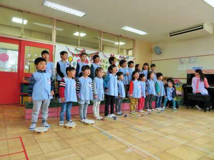 写真は、はな2組の合奏「シンデレラのスープ」歌「ゆきのペンキやさん」です。