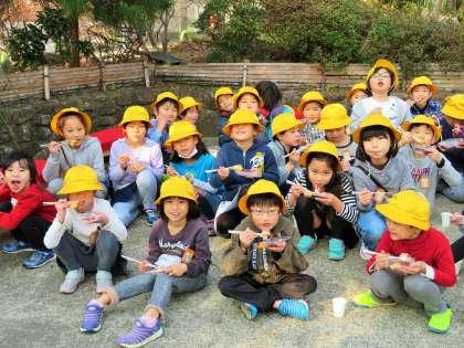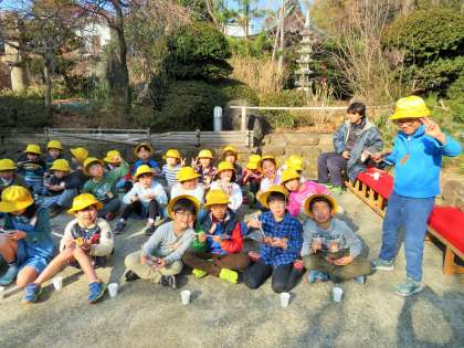 1〜3年生は、地域の妙法寺の「二の午」に参加しました。地域の方々から、おもちや甘酒をふるまっていただいたり、昔遊びを体験させていただいたりと、本当に楽しい時間を過ごさせていただきました。地域や保護者の方々は、早朝6時30分から準備をしてくださっていました。