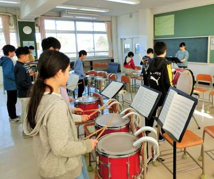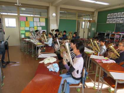 5年生は、特別講師による鼓笛の講習を受けました。子どもたちは、今回も本物の音を聴きながら、音譜の読み方、音の出し方など、少人数で基礎からの講習を受けました。