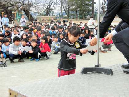 今日の全校朝会は、平昌オリンピックのフィギュアスケート男子で、羽生結弦選手が二大会連続で優勝した話をしながら、今週木曜日に行われる、1〜4年生の持久走大会、5・6年生の駅伝大会に向けて、最後まで諦めない、強い心をもって努力してほしいという話をしました。