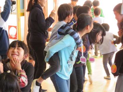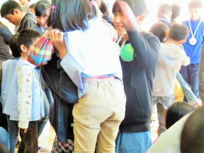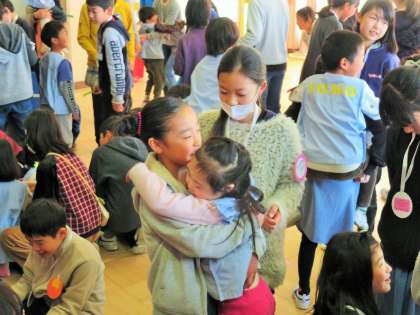 最後は、ぎゅーと抱きしめたり、おんぶをしたりしてお別れをしました。いつまでも手を振っている5年生の姿がありました。