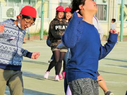 6年生に遊んでもらって、校庭には笑顔がいっぱいです!