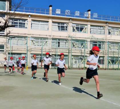 今日は4年生が、持久走大会に向けて練習をしました。朝ランニングの成果発表として、自分のペースで600mをリズムよく走ることをめあてとしています。一心不乱に、しっかりと前を向いて全力で走っている姿はとっても素敵です。