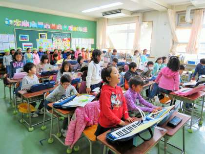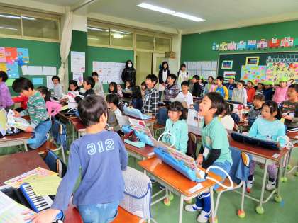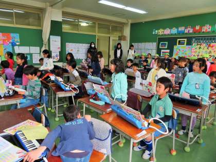 どのクラスも温かく迎えてくれて、特に1年生の音楽では特別大サービスで、「やまびこ」の歌を大きな声で歌ってくれたので園児の皆さんも大喜びでした。