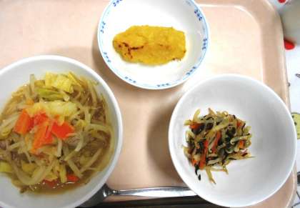 今日の給食は、<みそラーメン>です。みそラーメンは、砧小の給食の中でも人気のあるメニューのひとつです。かくし味に練りごまを使っています。