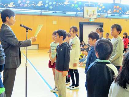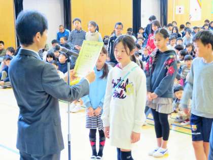 持久走大会1位から6位まで、入賞者の表彰をしました。
