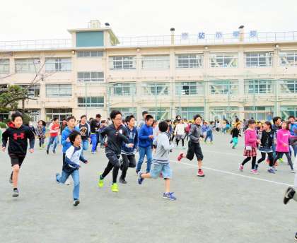 昨日は雨風が強く嵐のような天気でしたが、昨夏に校庭整備をしたことにより、今日は朝から校庭で元気よく遊ぶことができました。始業前の朝遊び・朝ランニングに取り組むことにより、「健康・体力」の向上を図っています。また脳も活性化され、授業での集中力がアップし、「学力」も向上するという科学的なデータがあります。