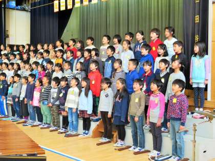 今日は3年生の「ミニミニコンサート」です。音楽の時間を使って練習をしてきた合唱、合奏、リコーダー等、いろいろな演奏を12曲発表しました。